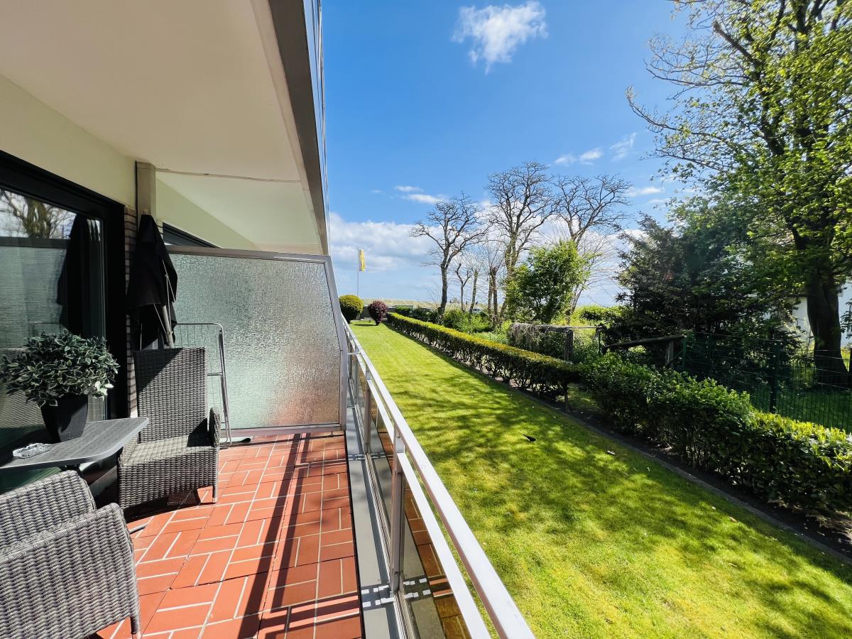 Die Wohnung hat einen kombinierten Wohn -/Schlafraum mit neuem Doppelbett für 2 Personen (Liegefäche 1x160x200cm) mit TV Flachbildschirm und Zugang zum sonnigen Balkon von dem Sie seitlich zur Düne/Strand/Meer schauen können.