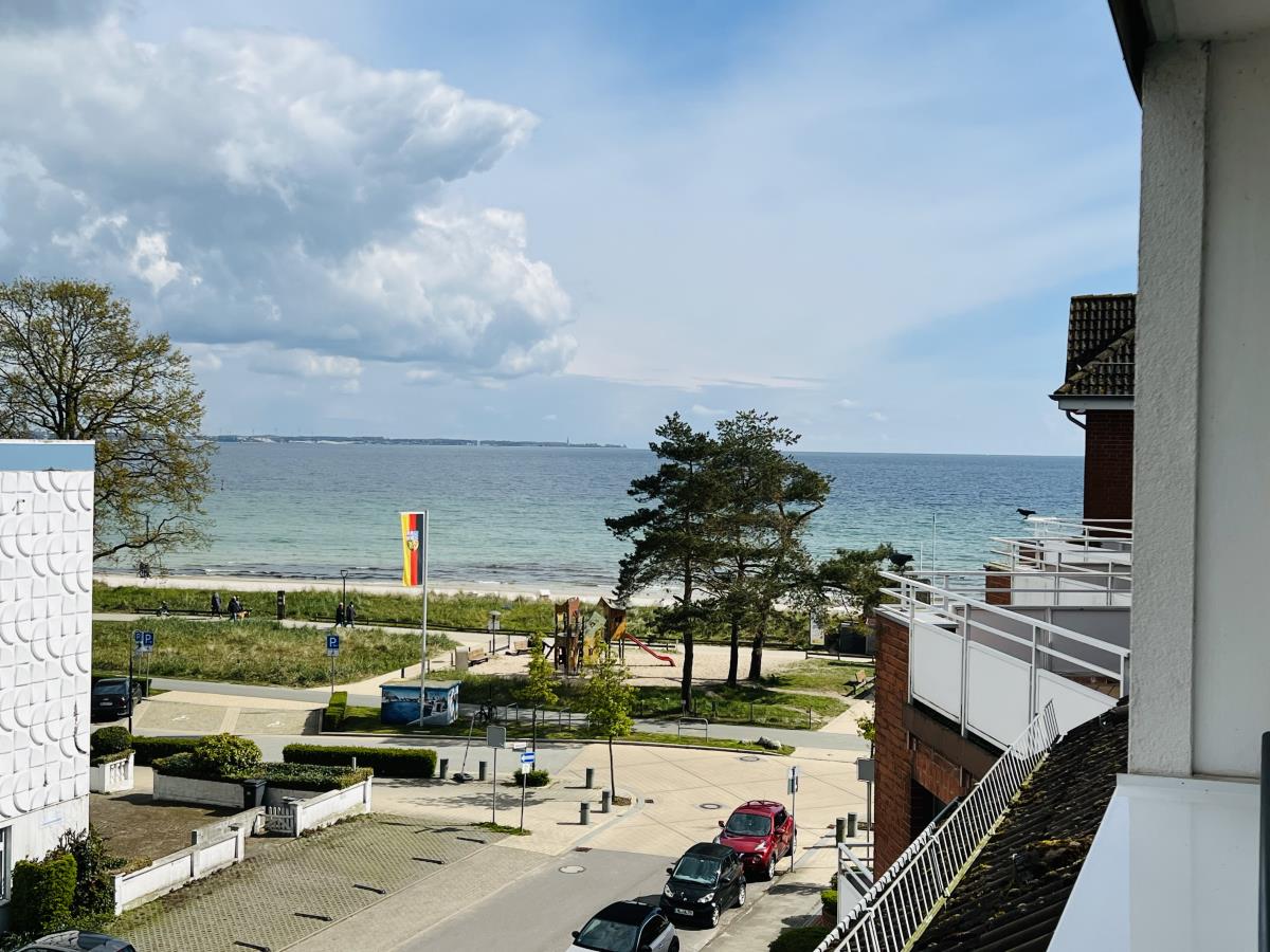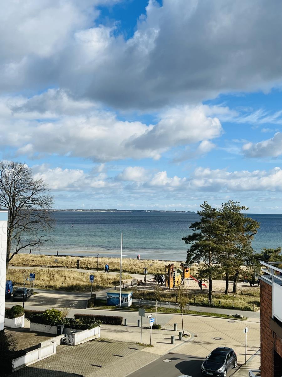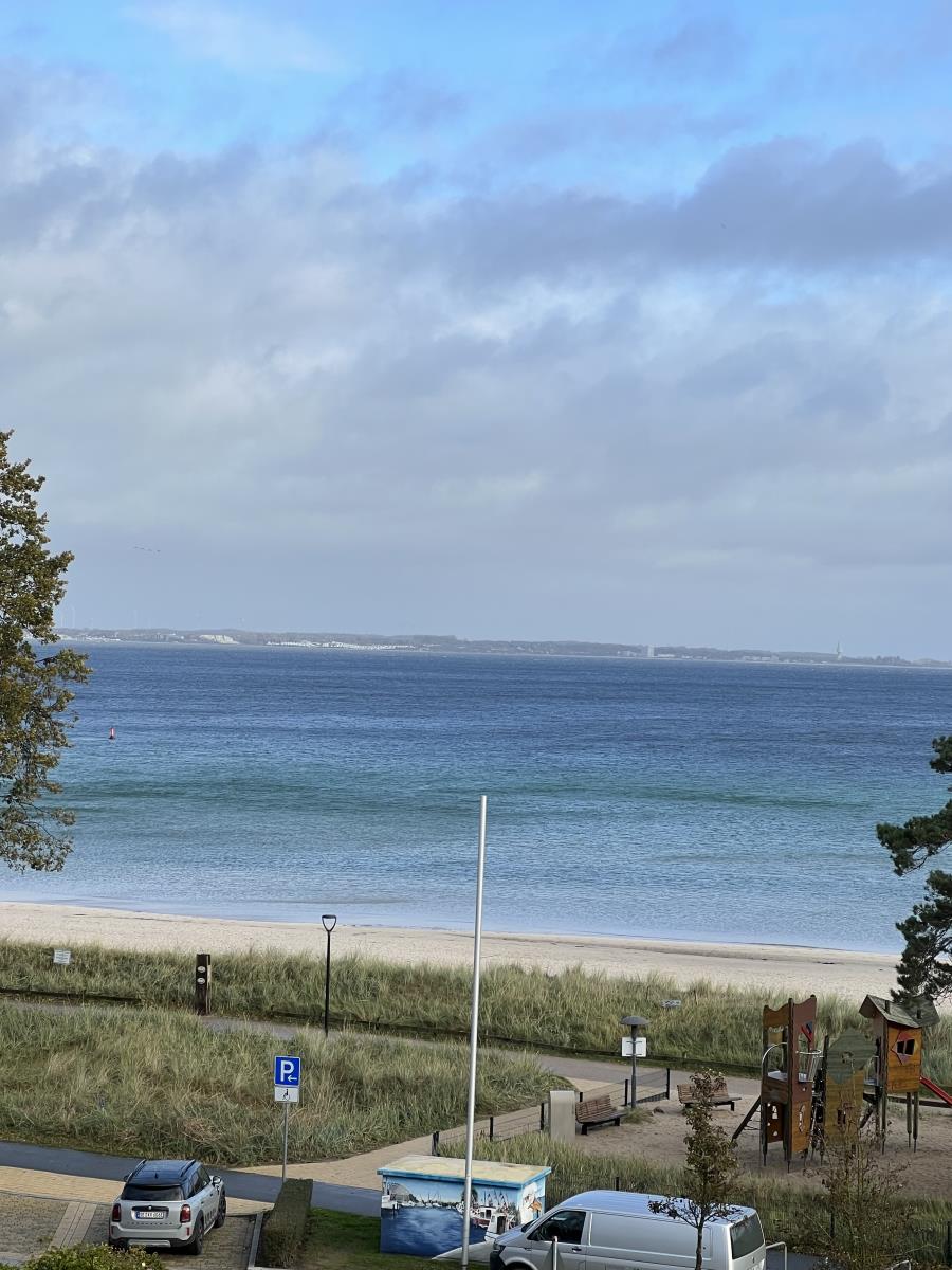 Direkte Strandlage und Teilmeerblick vom Balkon auf die Ostsee.