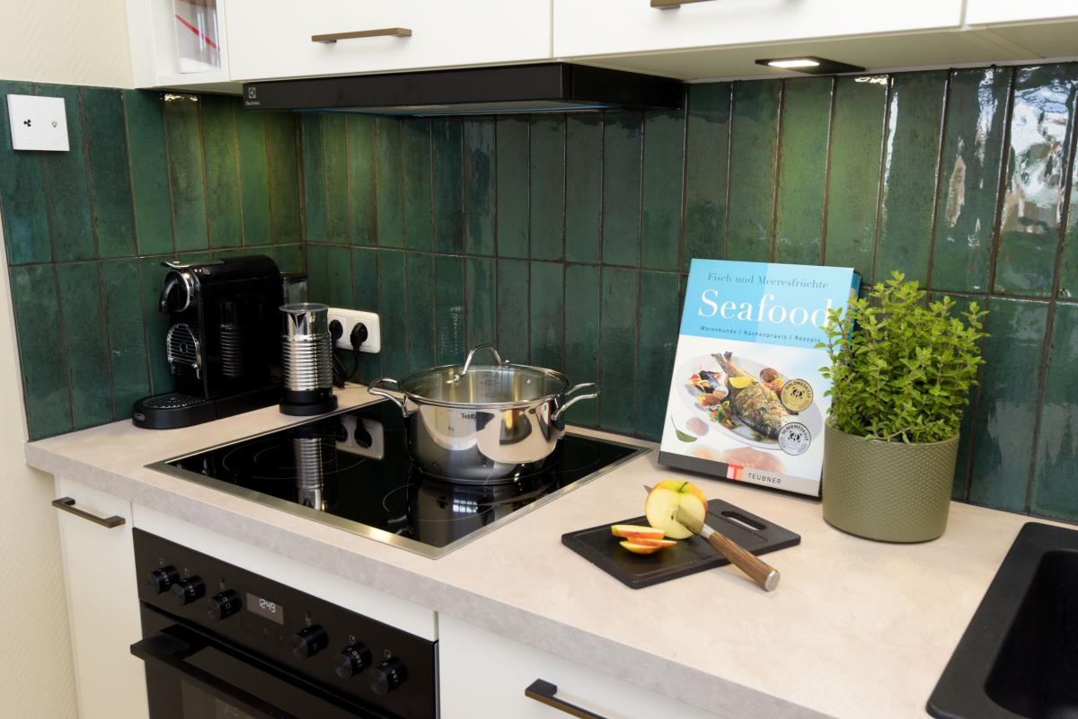 Die Küche ist nicht nur funktional, sondern ein Ort zum Zusammensein. Dank einer großen Kücheninsel mit Barhockern ganz nah dran und mittendrin. Mit hochwertigen Geräten, einer Vollausstattung, stilvollem Geschirr, schönen Gläsern und passendem Besteck sowie einem XL-Kühlschrank mit drei Gefrierfächern bietet sie beste Voraussetzungen für entspannte Kochabende. Ein Supermarkt ist in nur 3 Minuten mit dem Auto erreichbar, und wenn ihr euch lieber kulinarisch verwöhnen lassen möchtet, sind viele tolle Restaurants nur wenige Schritte entfernt.