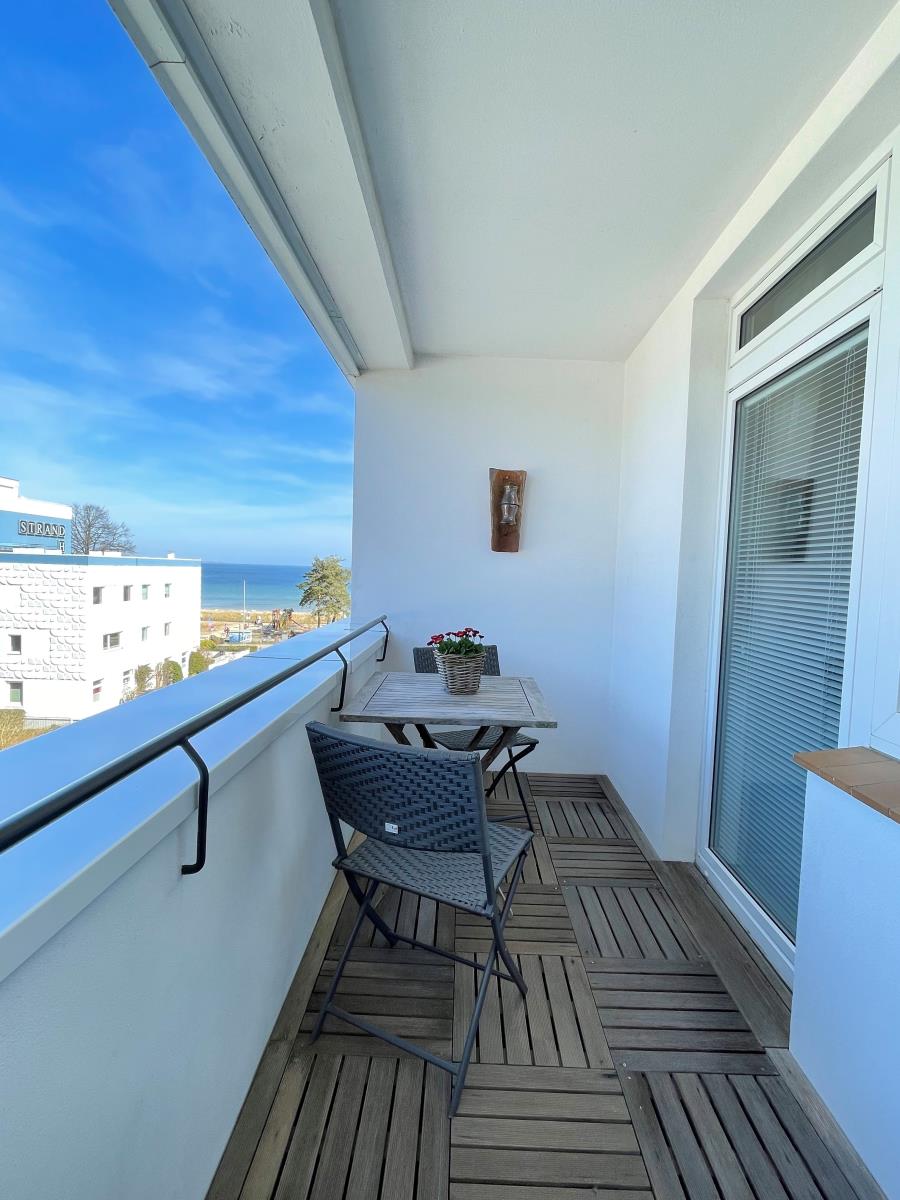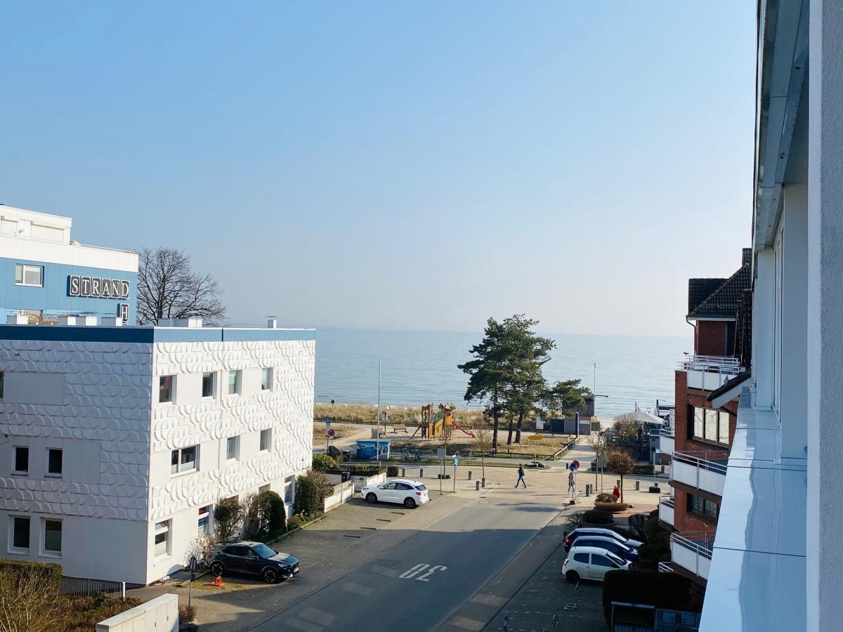 Direkte Strandlage und Teilmeerblick vom Balkon auf die Ostsee.